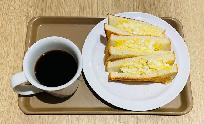 モーニングの「トーストサンドセット」は焼き立てならではの美味しさと満足感があり、早朝の訪問にぴったり。