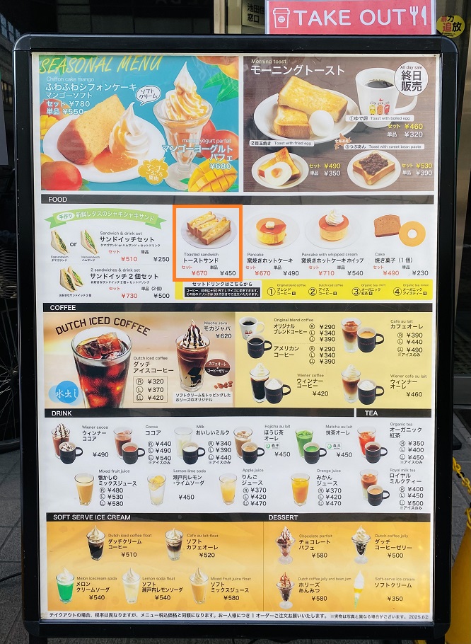 モーニングセットはAM11時まで注文可能。