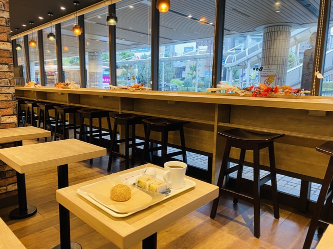 温かいコーヒーを片手に、静かな朝の駅前を眺めながらいただく時間は、まさに小さな贅沢。