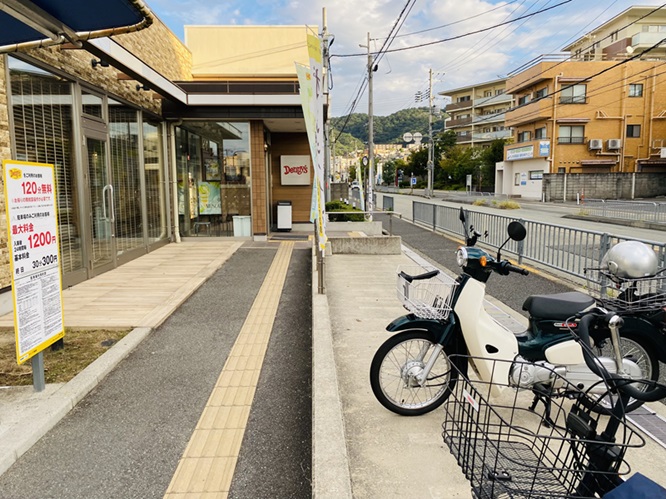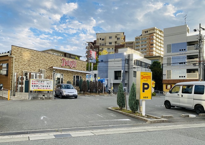 「デニーズ池田店」は、駅前の賑わいを少し離れた静かなエリアにあります。