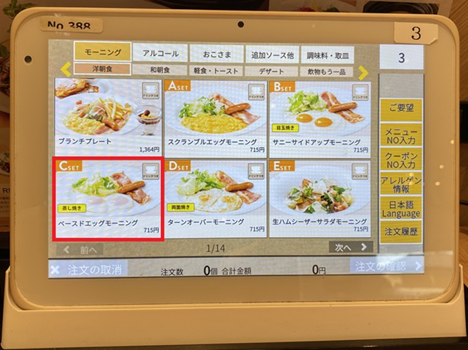 今回は数あるモーニングメニューの中から「ベースドエッグモーニング(税込715円)」を注文。