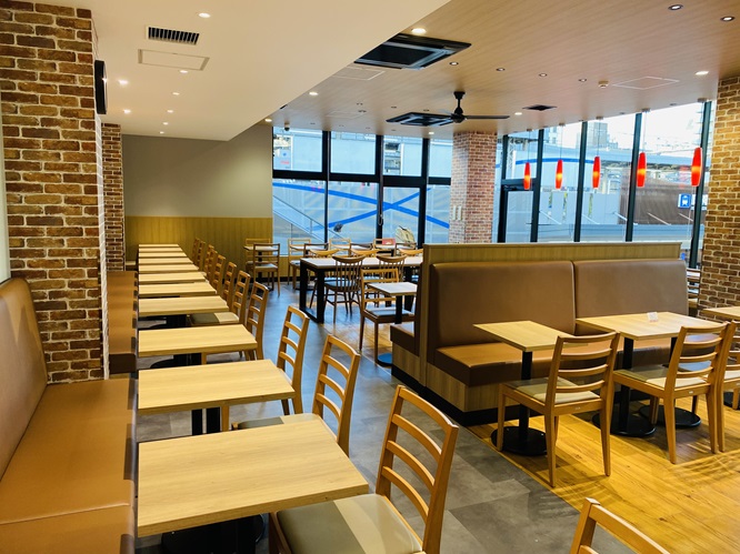 ホリーズカフェ阪神尼崎駅前店の大きな魅力は、なんといっても圧倒的な“広さ”