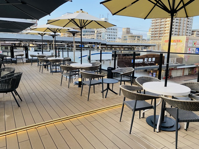駅前とは思えない開放感で、プチリゾート気分を味わえます。